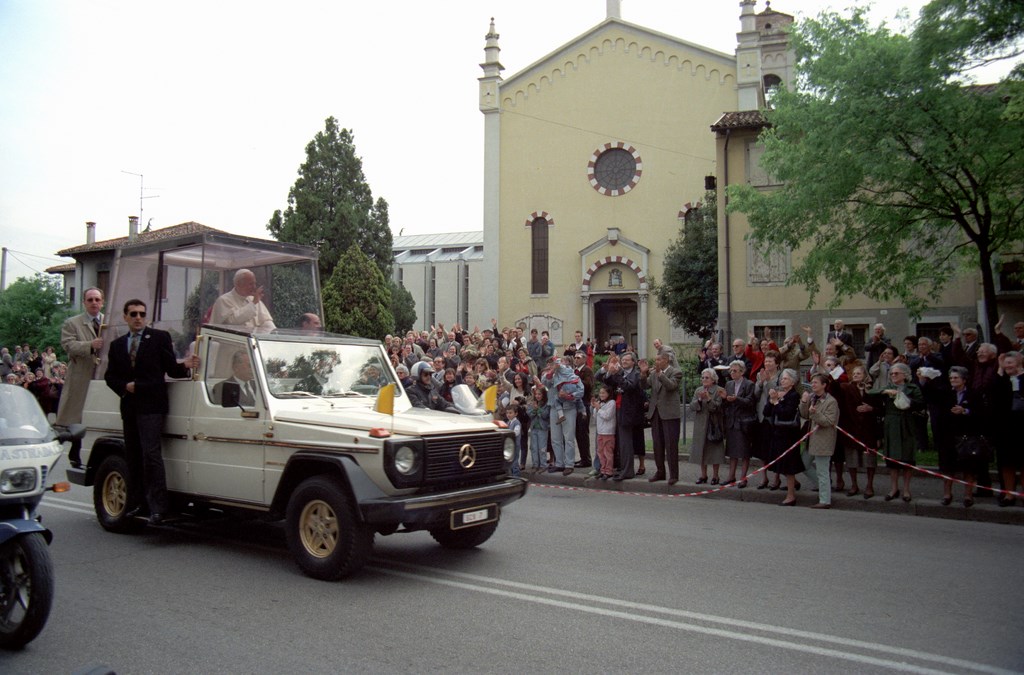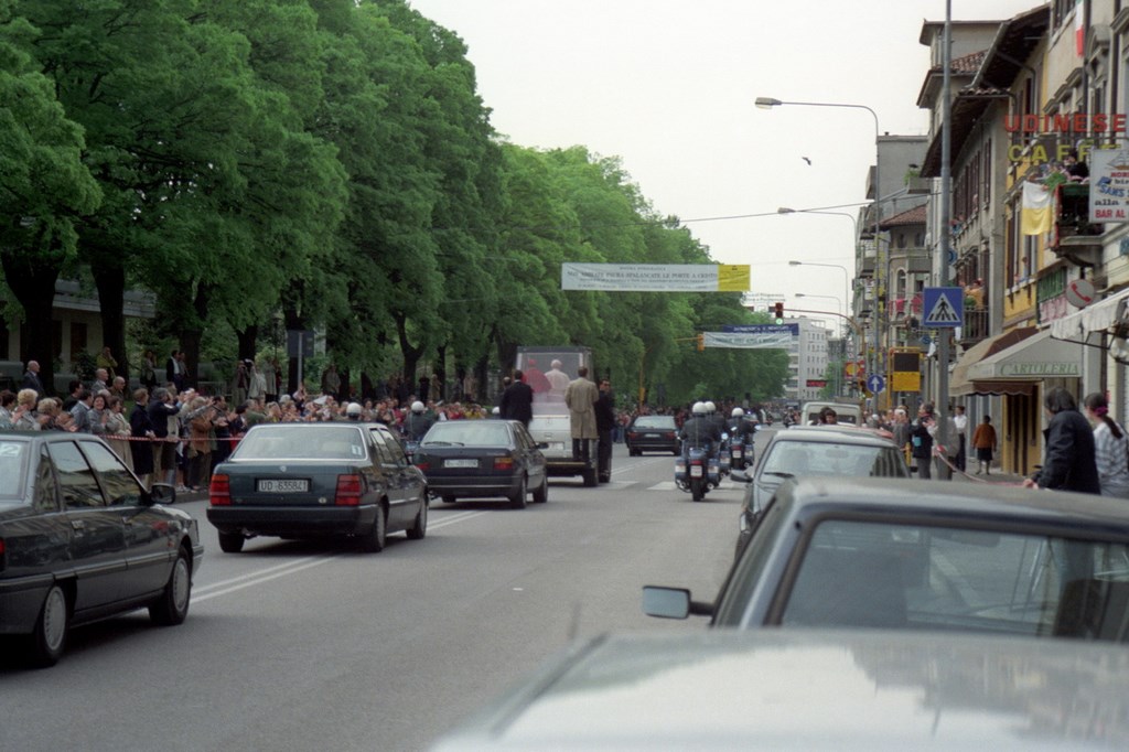 Era il 3 maggio 1992, e papa Giovanni Paolo II, ora santo, stava compiendo la sua grande visita pastorale in Friuli. Il suo percorso lo ha portato a transitare davanti alla nostra chiesa di san Marco, dove parte della comunità era radunata per salutarlo. Il signor Renato Riva ha immortalato quei momenti ed ha gentilmente recuperato per noi i negativi di quelle foto. In questo bollettino ricordiamo alcune parole significative di quella giornata.