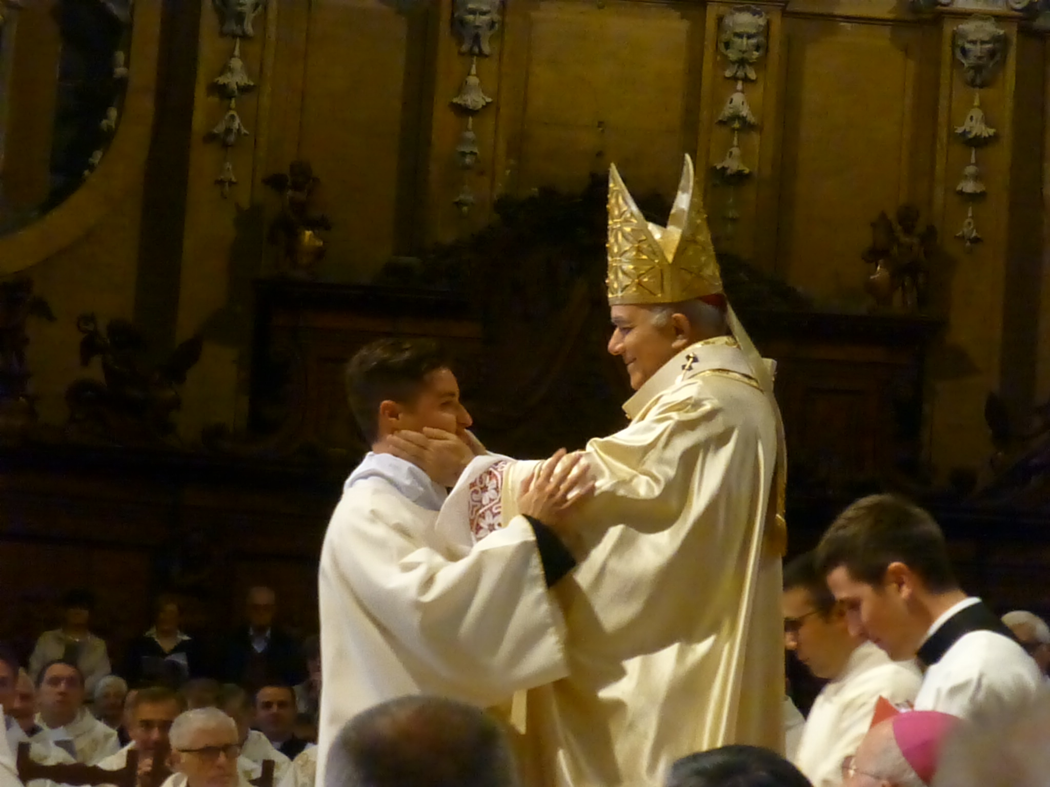 Breve video dellabbraccio e del bacio dell’Arcivescovo all’ordinato Nicola Zignin