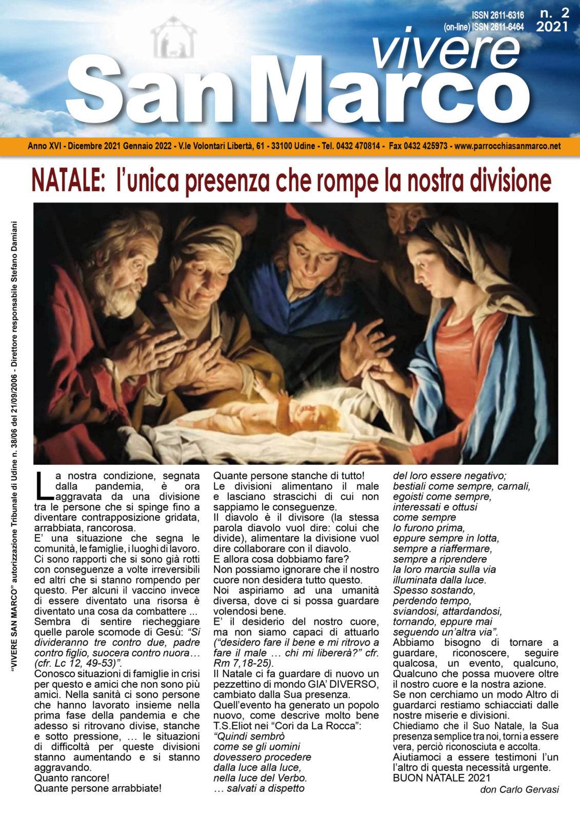 In distribuzione da domenica 19 dicembre, presso l’ufficio parrocchiale, il nuovo numero di Vivere San Marco