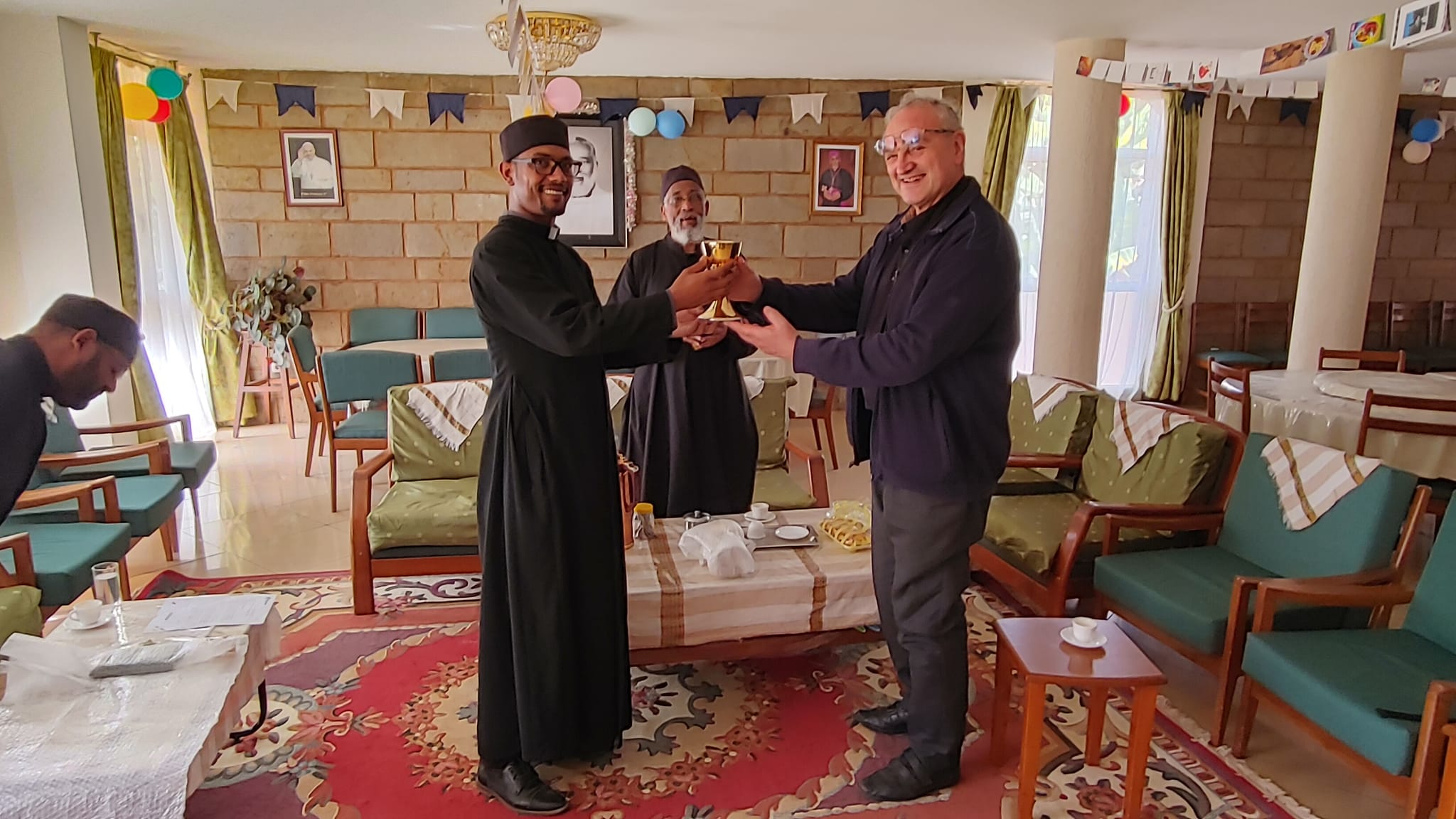 Subito dopo pranzo facciamo conoscenza con il giovanissimo parroco di Bazreche a cui consegniamo i vasi sacri per la nuova chiesa.