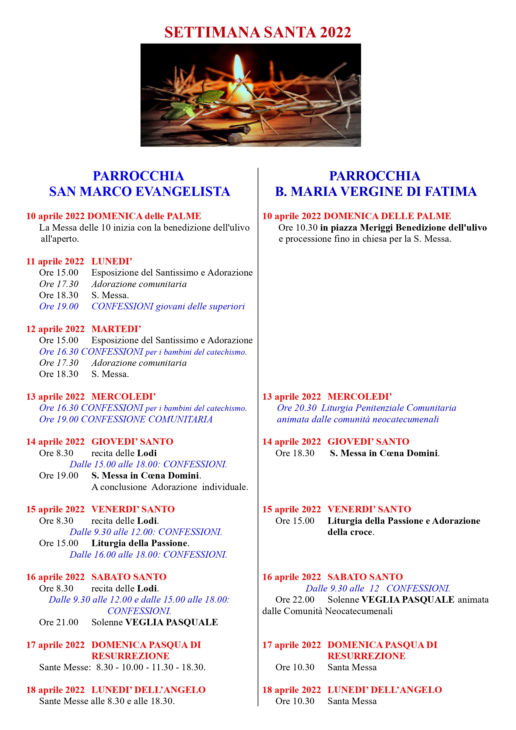 18 aprile 2022 LUNEDI’ DELL’ANGELO