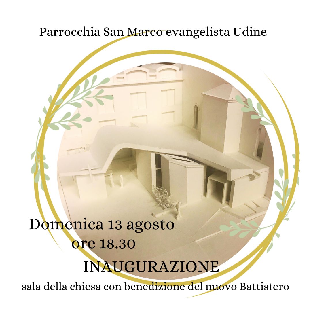 Domenica 13 agosto alle ore 18.30, con la presenza del nostro Arcivescovo mons. Andrea Bruno Mazzocato, ci sarà l’inaugurazione della nuova sala della chiesa con benedizione del nuovo Battistero e la celebrazione di quattro battesimi.